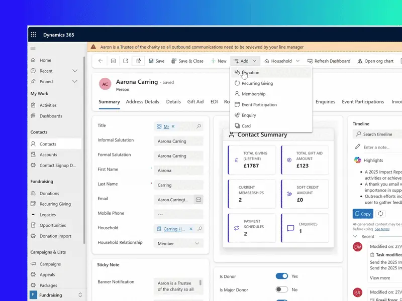 Stop wrestling with inconsistent data and start making strategic decisions. With the Microsoft tools you know and ForGood.Tech’s non-profit modules, transform siloed information into rich, actionable insights.